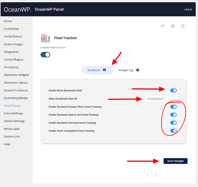 Remember that you can activate both Facebook Pixel and Google Tag Manager (GTM) using your OceanWP theme's "Pixel Tracker" feature for comprehensive tracking and centralized management. Utilizing Google Tag Manager may add complexity, but it also provides flexibility for data analysis and platform usage.